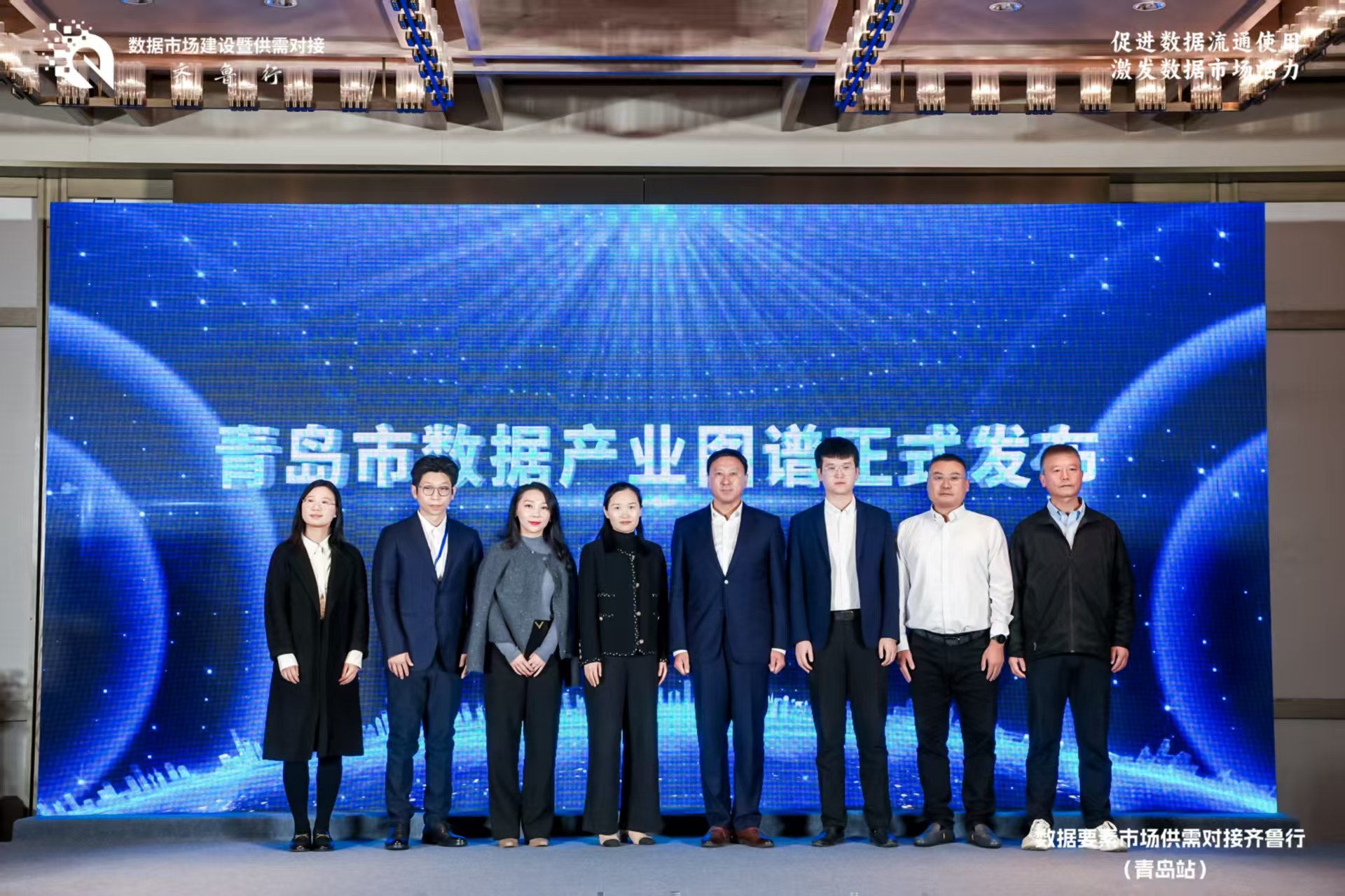 会议期间,青岛市数据产业图谱发布,国家信息中心大数据发展部数据要素处处长王璟璇、青岛华通集团、青岛数据集团副总经理梁明君出席,纬领(青岛)网络安全研究院有限公司(简称“纬领安全”)等六家数厂参与活动仪式,纬领安全总经理李彦江作为数据安全提供商代表应邀出席了本次会议。